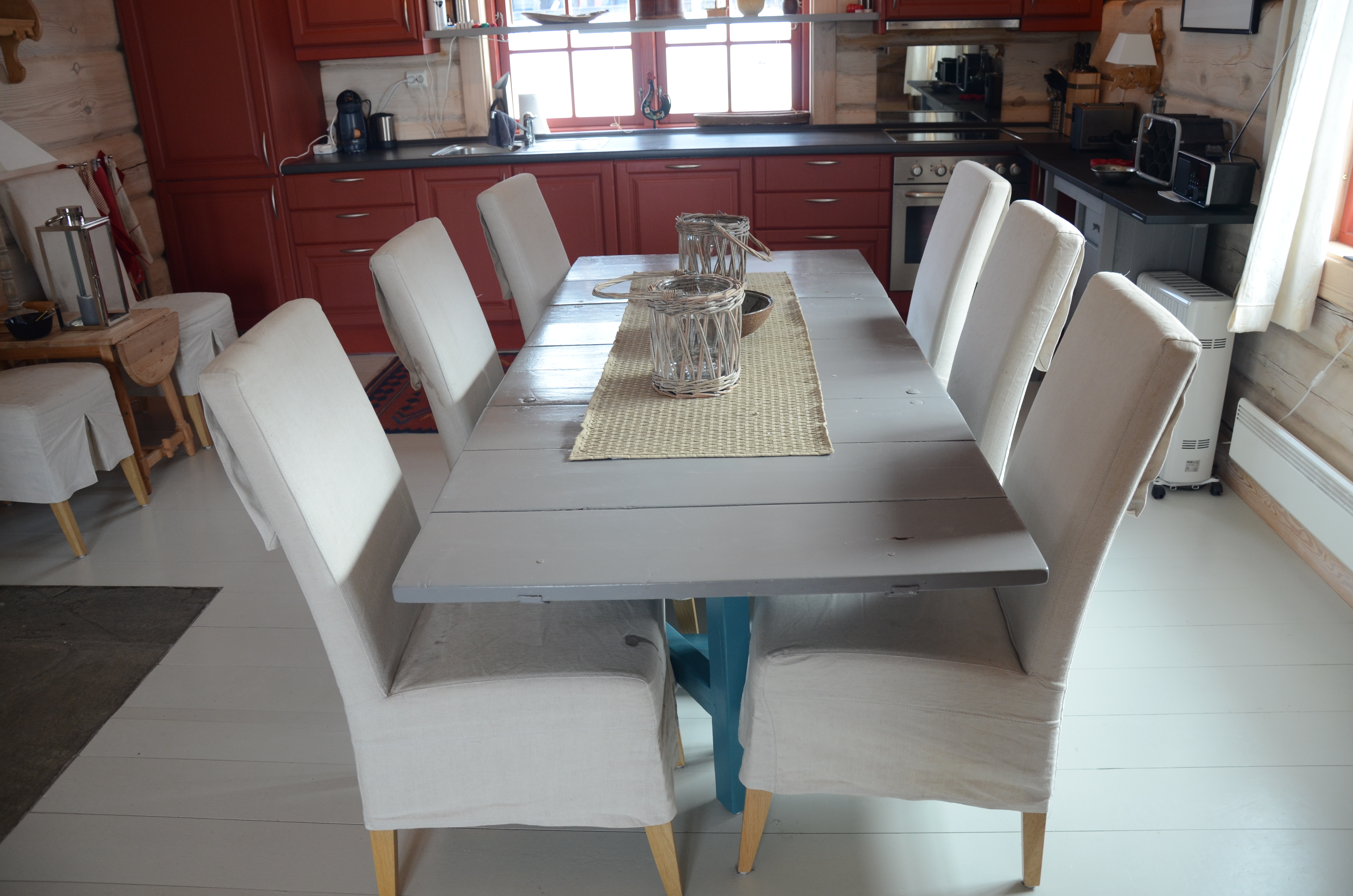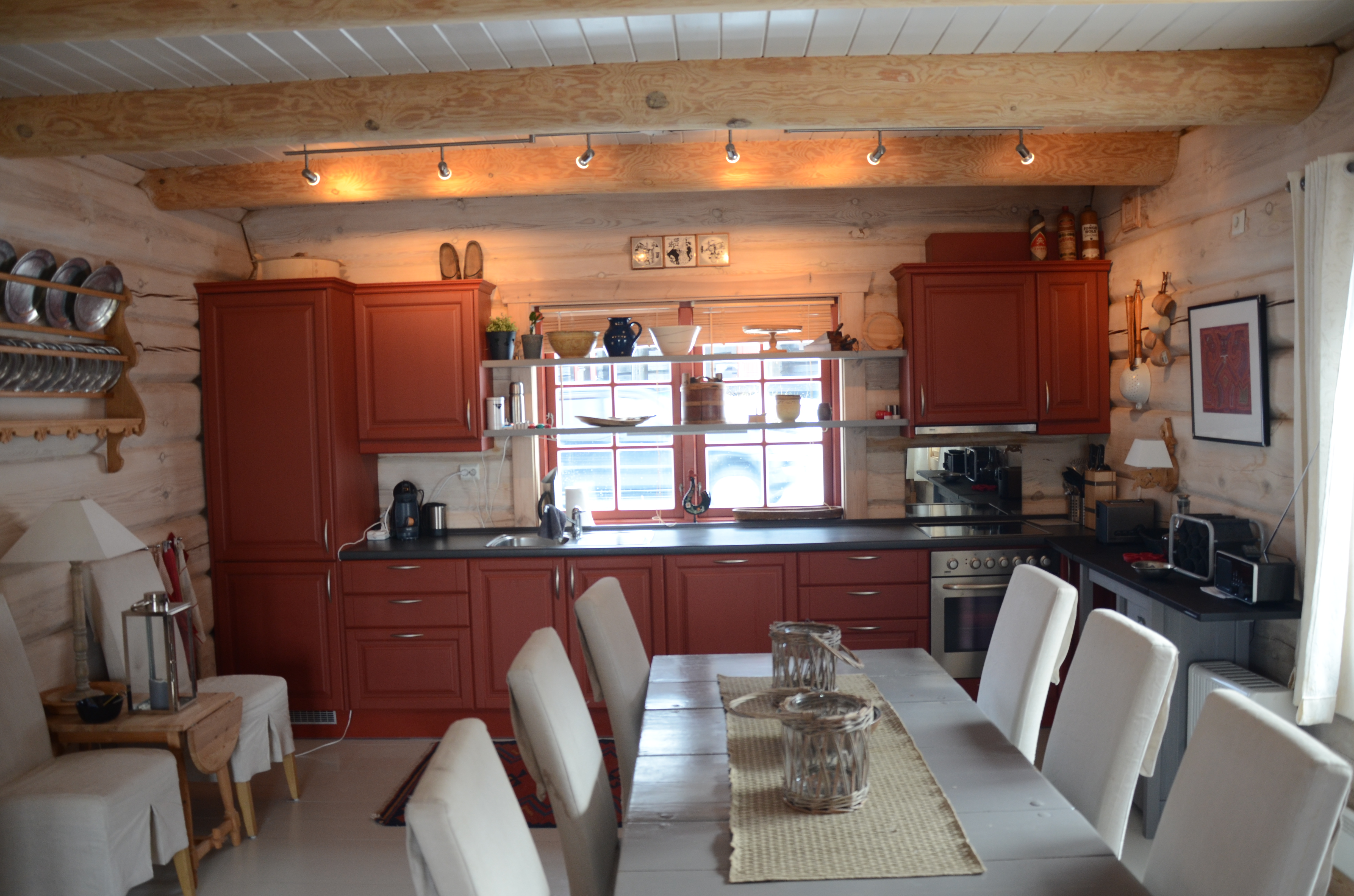 Kjøkken: Stekeovn/komfyr, kjøl/frys, oppvaskmaskin, vannkoker, kaffetrakter, mixmaster. Er godt utstyrt til matlaging. Spisebord for 10 personer.