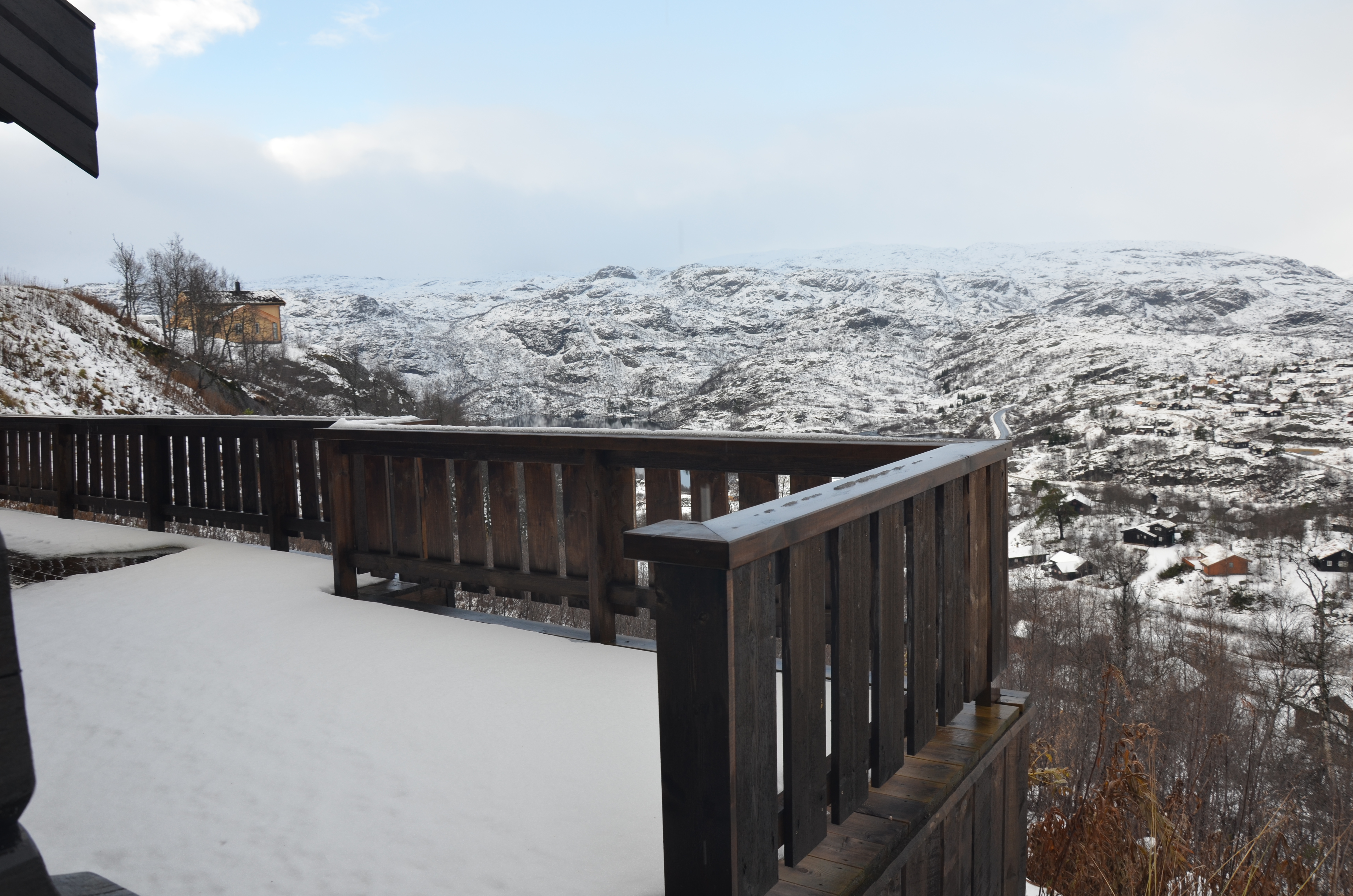 Utgang til stor terasse med nydelig utsikt.