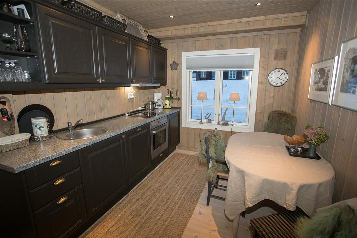 Kjøkken: Stekeovn, komfyr, kjøl / frys, oppvmask, vannkoker, kaffetrakter. Er godt utstyrt til matlaging. Spisebord for 4 personer.