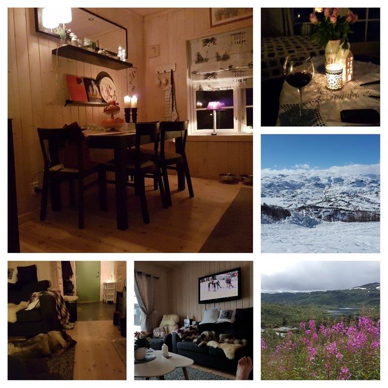 Leiligheten har 4 senger fordelt på 1 soverom + sovesofa, 1 bad, kjøkken / stue med vedovn. Leiligheten har kabel TV. NB: Det er ikk wifi i leiligheten. Terrasse med nydelig utsikt og solforhold.